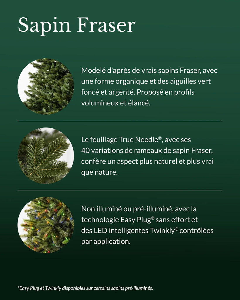 Verleihen Sie Ihrer Weihnachtsdekoration mit dieser unvergleichlichen Nachbildung der beliebtesten Weihnachtsbaumarten einen festlichen Touch. Die Fraser-Tanne bildet Form, Farbe und Volumen ihres natürlichen Vorbilds verblüffend genau nach. Hergestellt aus Abgüssen natürlicher Fraser-Tannenzweige, verfügen die Nadeln über True Needle®-Technologie . Sie imitieren das Laub echter Nadelbäume in 40 verschiedenen Variationen – die größte Auswahl aller unserer Weihnachtsbäume. Dieser realistische Weihnachtsbaum bietet einen eleganten Rahmen für unvergessliche Feiertage.