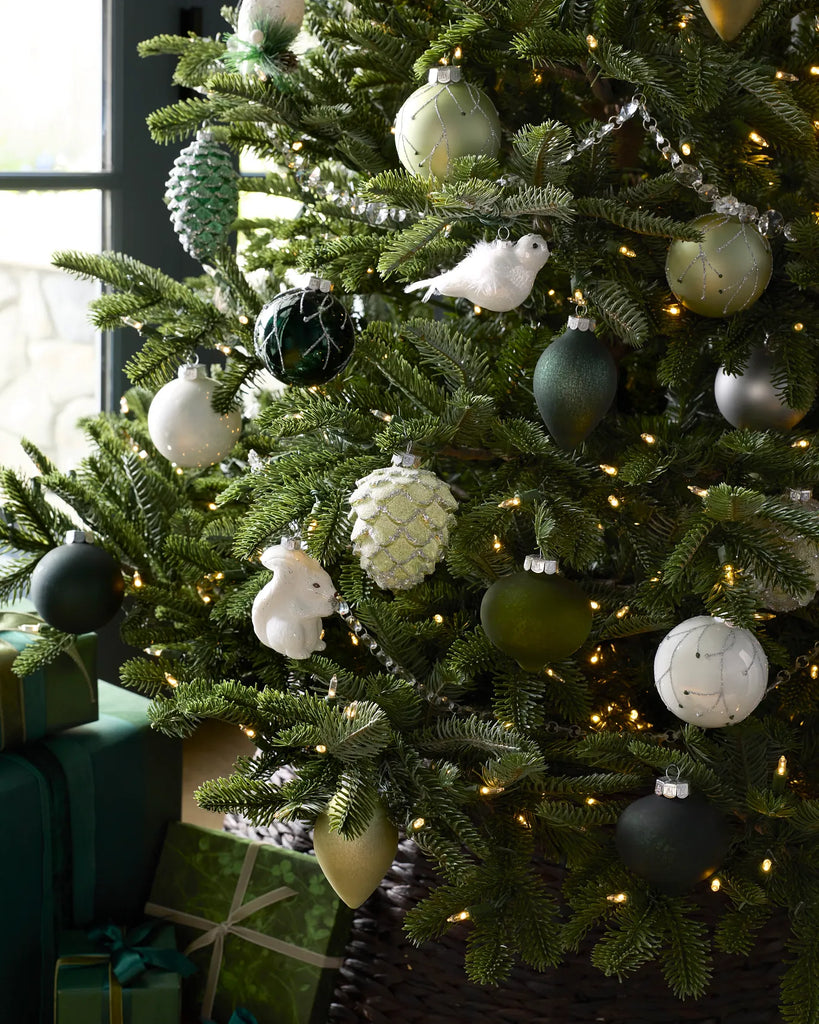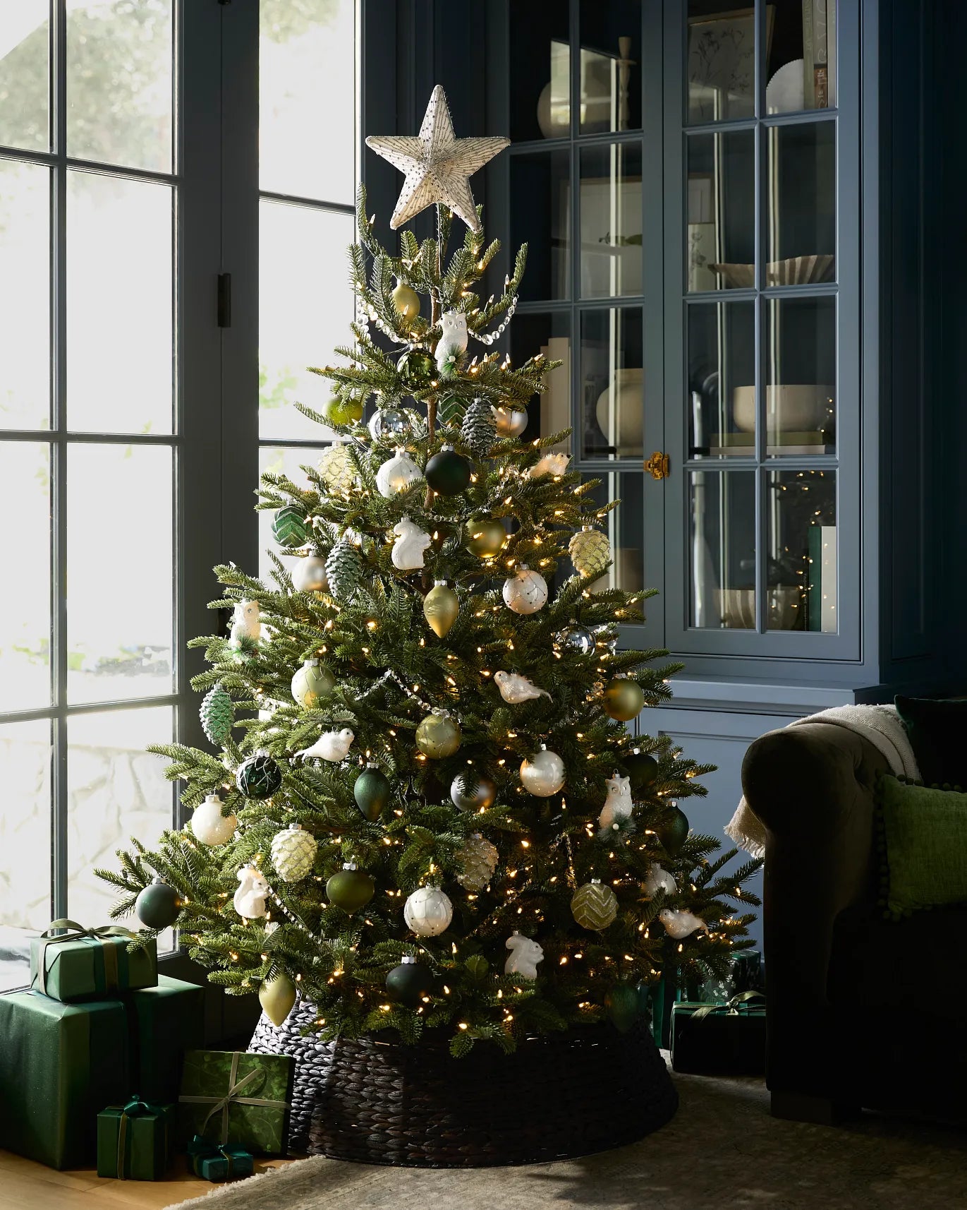 - Ein Weihnachtsbaum mit natürlicher Silhouette, der Ihre Weihnachtskugeln perfekt in Szene setzt.